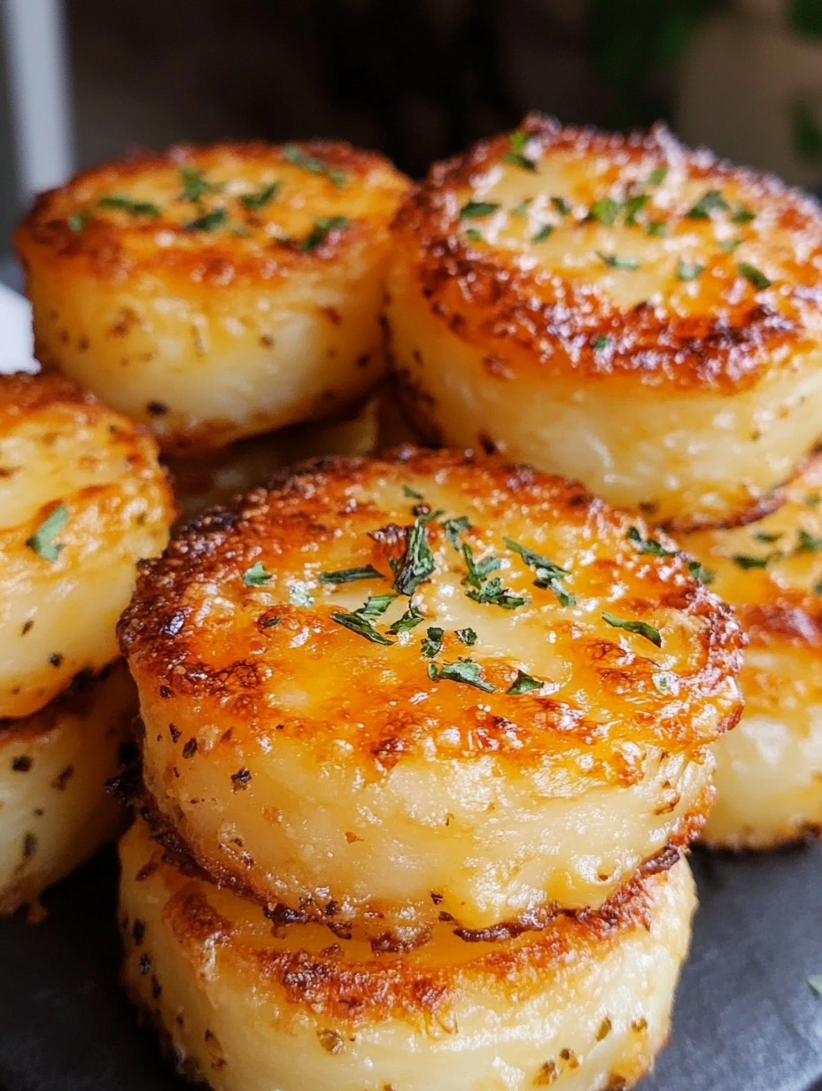 Crispy cheesy potato stacks are delightful bundles of thinly sliced potatoes layered with garlic, parsley, and shredded cheddar cheese, baked until golden brown and crispy. They offer a perfect balance of textures and flavors that will impress your guests.