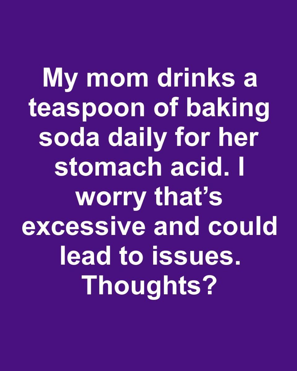 “My mom drinks a teaspoon of baking soda daily for her stomach acid. I worry that’s excessive and could lead to issues.”