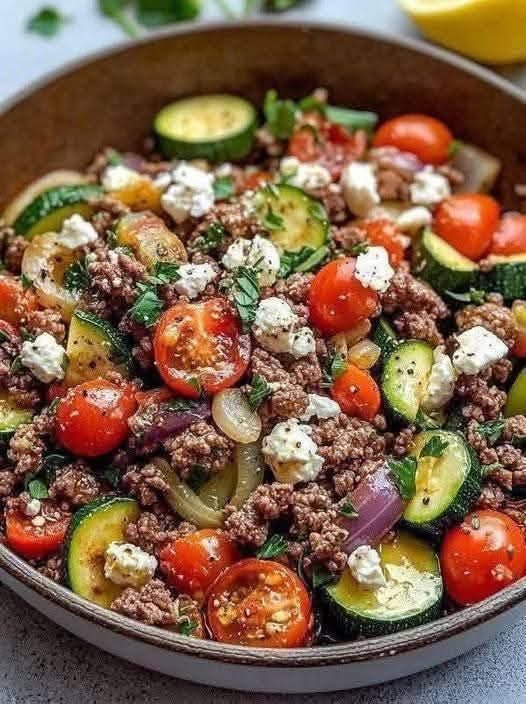 π Ground lamb, turkey, or chicken all work well for a lighter version.