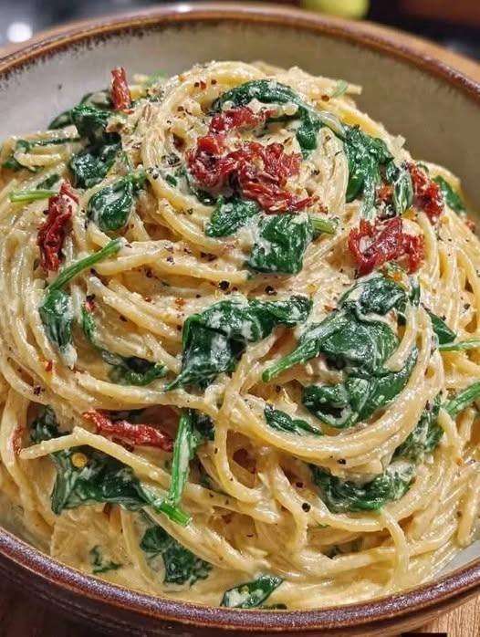 🍝 Spaghetti & Spinach with Sun-Dried Tomato Cream Sauce