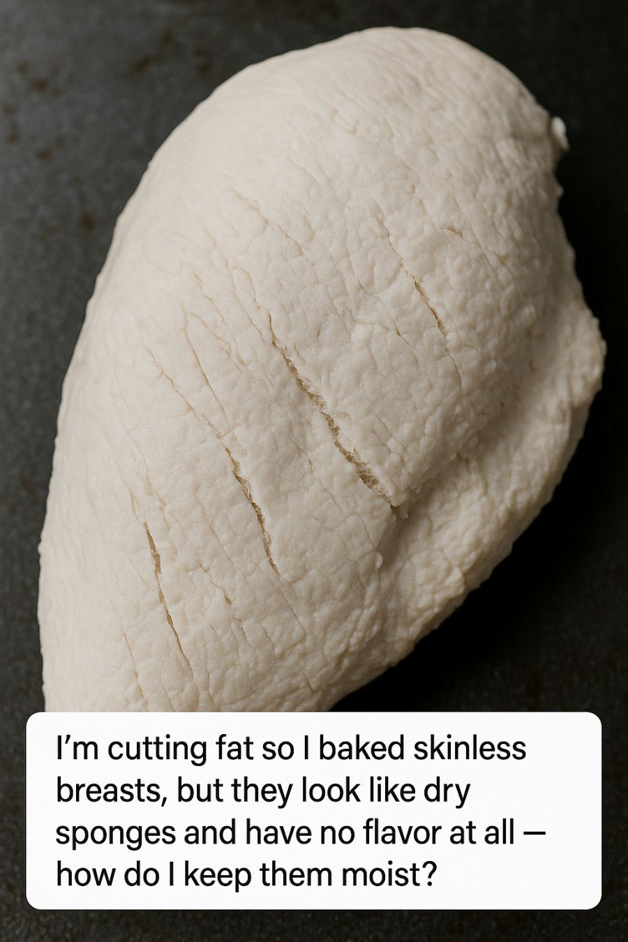 “I bake skinless chicken breasts, but they come out dry, tough, and completely bland—like eating a sponge.”