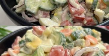Ingredients: Two big cucumbers, thinly sliced; one big red onion, thinly sliced; three big tomatoes, sliced or wedges One fourth…