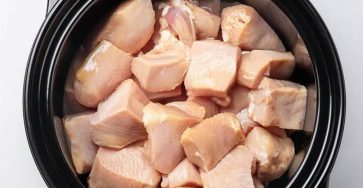 Put raw cubed chicken in a slow cooker with these 4 ingredients. You’ll crave this all winter.